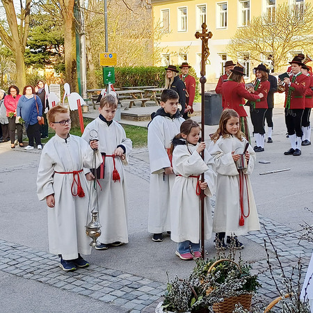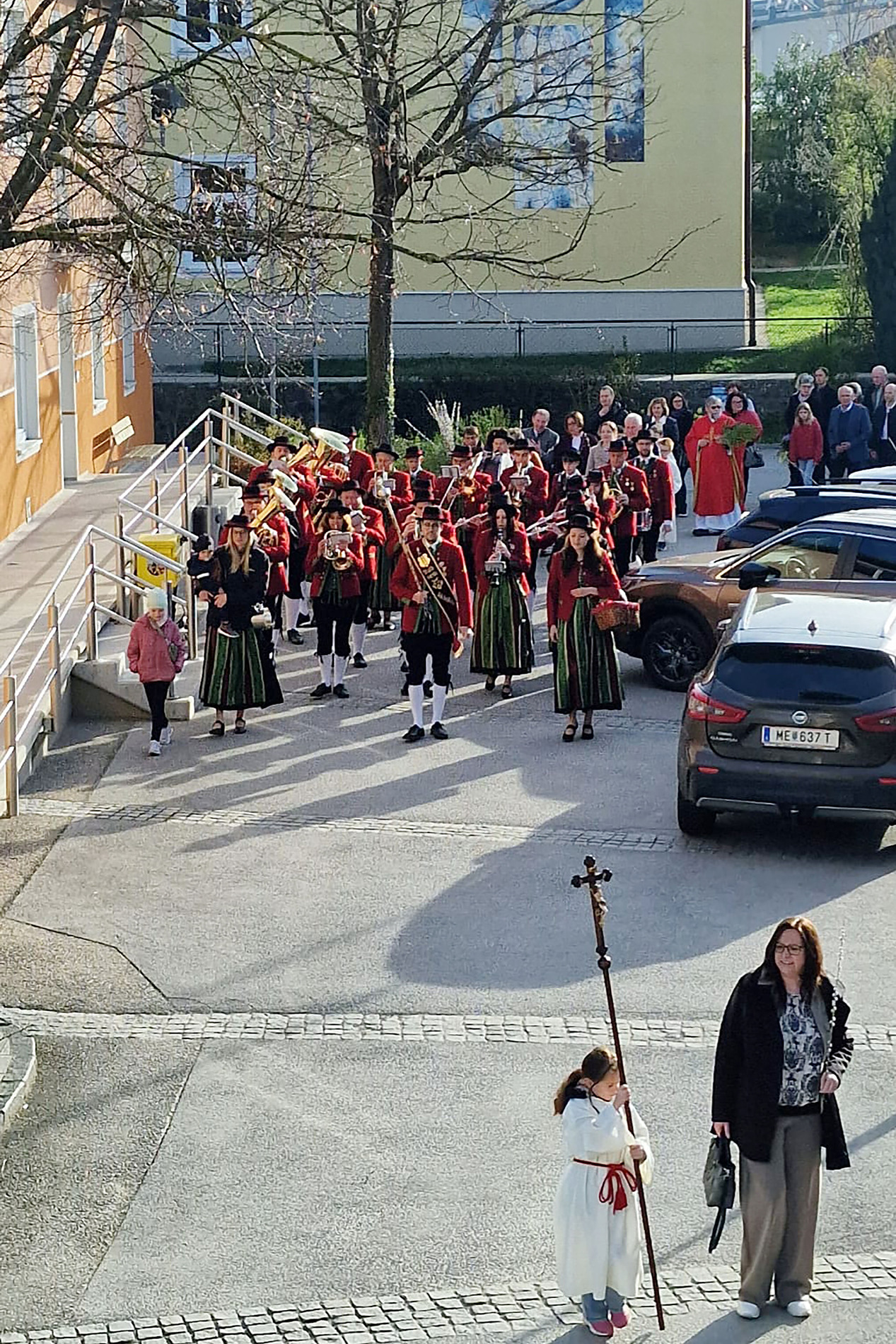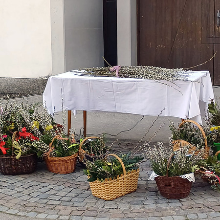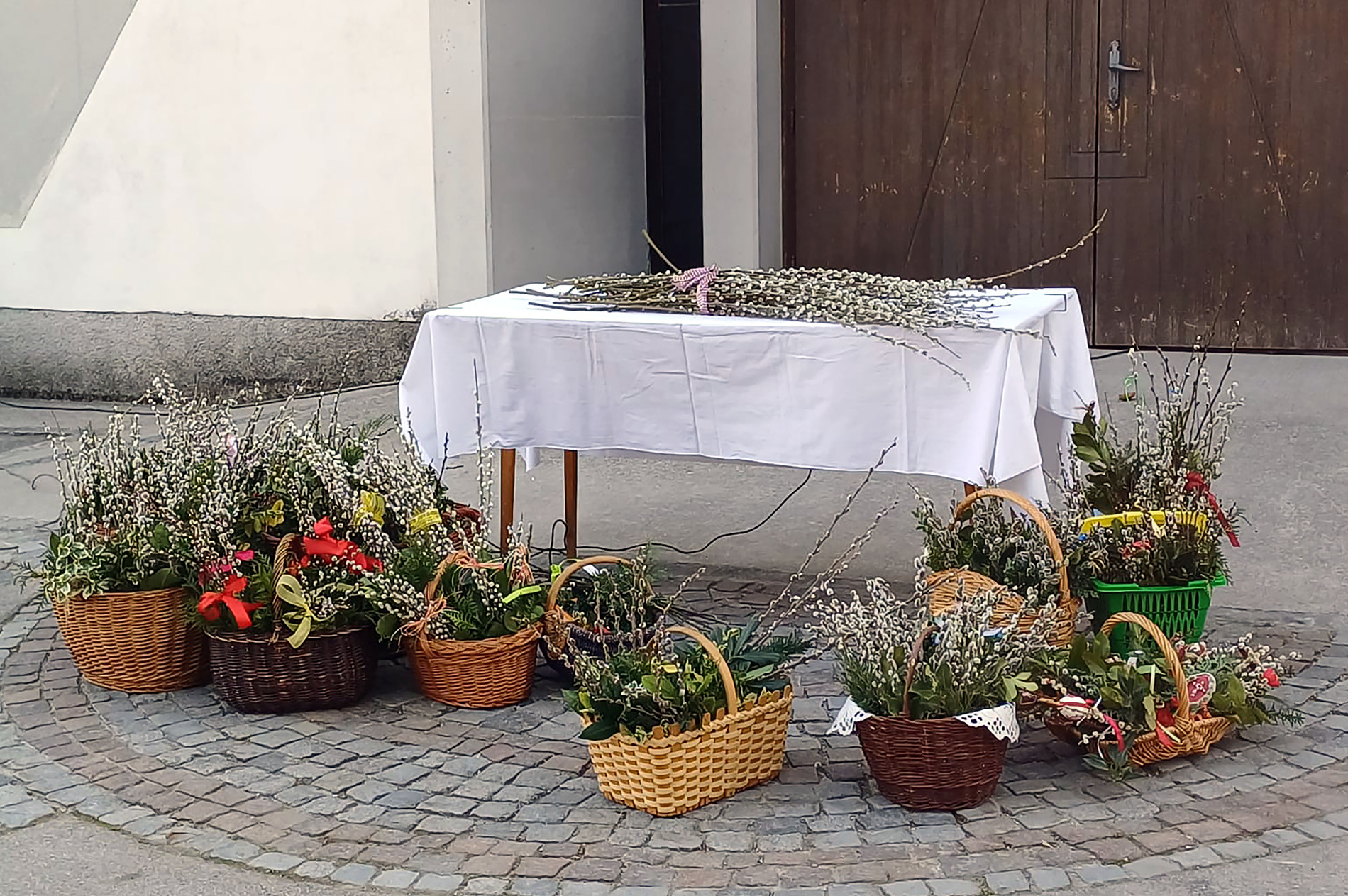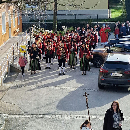 Am 13.4. feierten wir mit dem Palmsonntagsgottesdienst den Start der Heiligen Woche. Traditionell starteten wir vor der Aufbahrungshalle, anschließend zogen wir - im Gedenken an Jesu Einzug in Jerusalem - in unsere Pfarrkirche. Mit Hilfe der Firmlinge wurde den Mitfeiernden die Passionsgeschichte erzählt. Ein besonderes Dankeschön gilt dem MV Bischofstetten für die musikalische Begleitung der Messe.