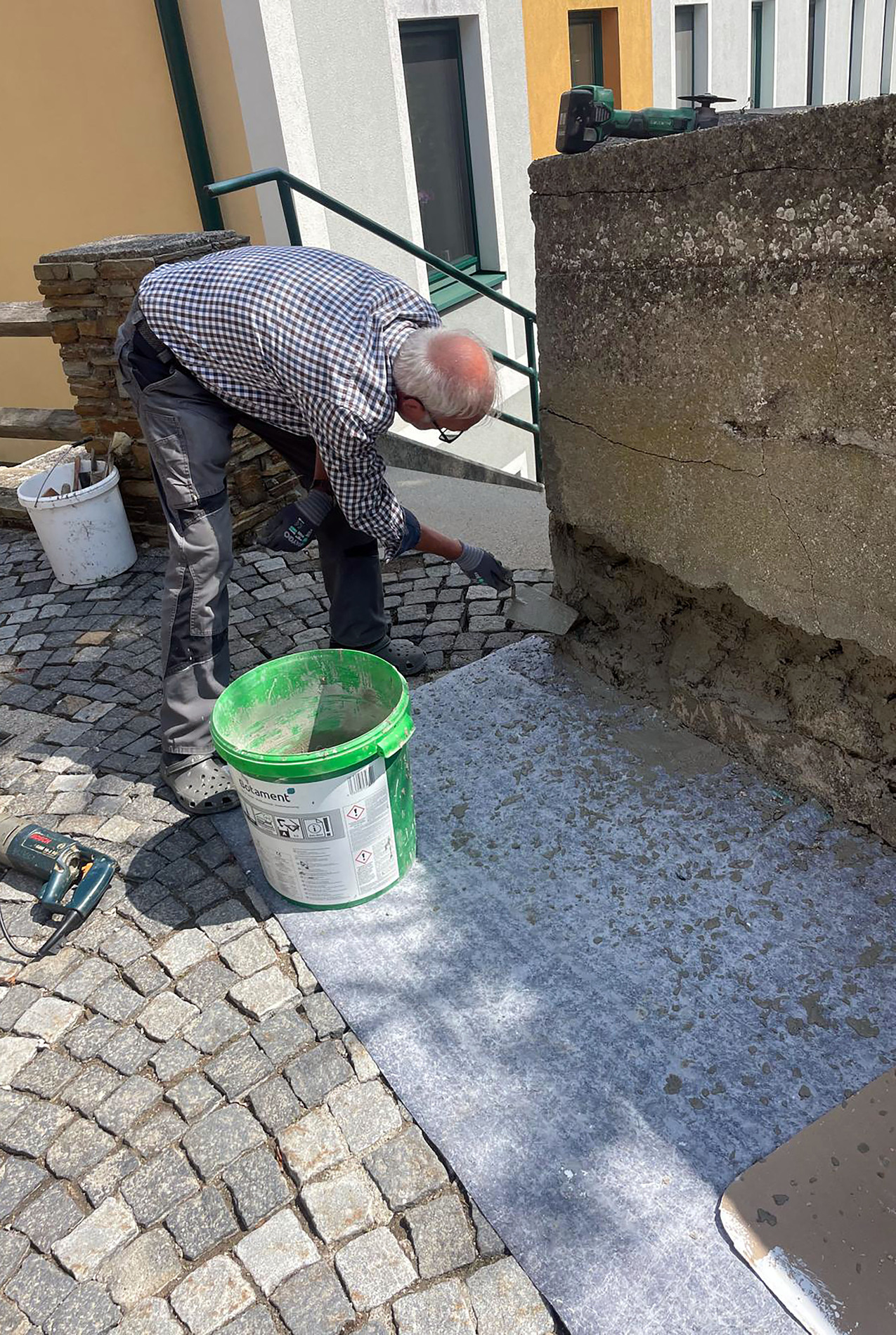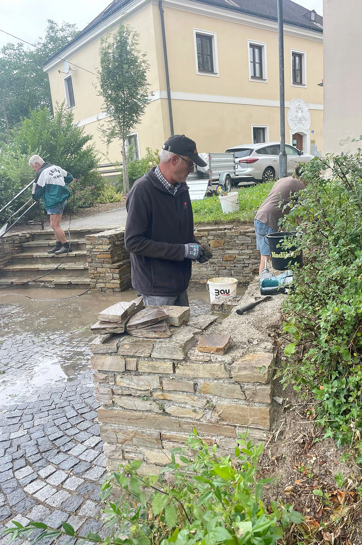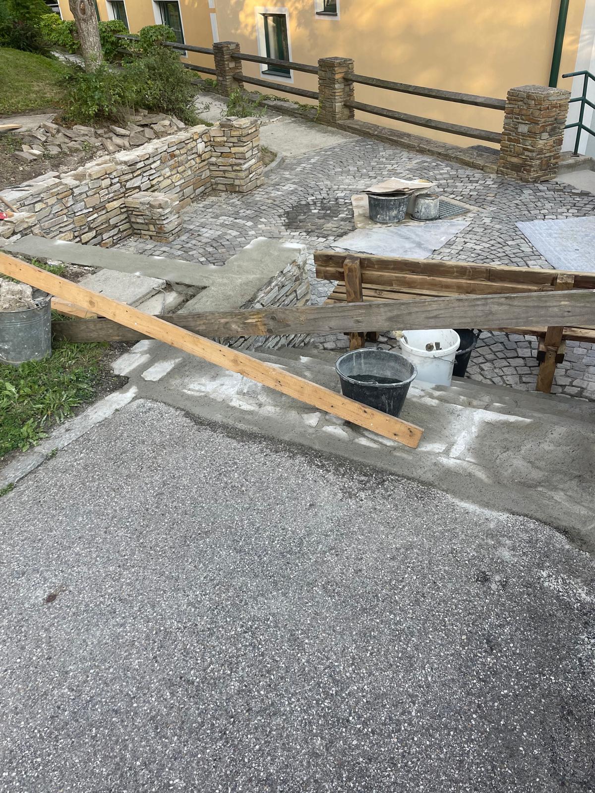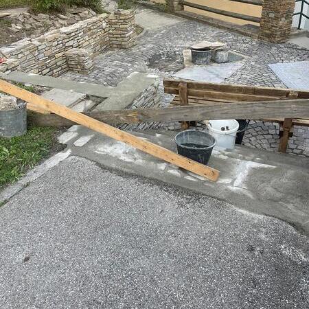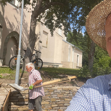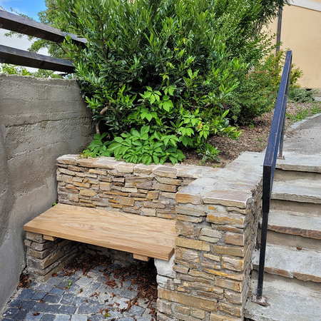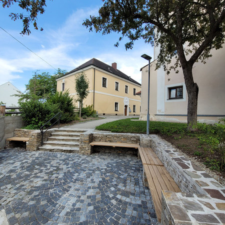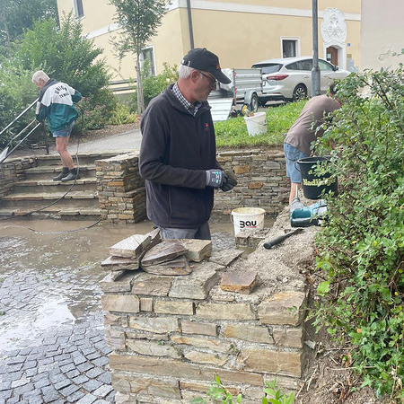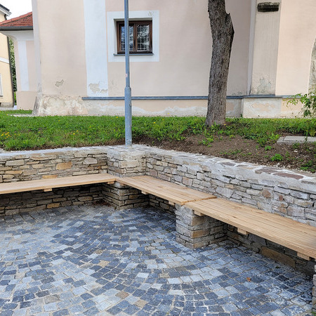 Anlässlich des runden Geburtstages unserer Frau Bürgermeisterin hat der ÖKB Bischofstetten den Abgang unter der Kirche renoviert. Die losen Steine der Steinmauern und die neuen Sitzbänke verschönern unseren Vorplatz und laden zum Verweilen ein.