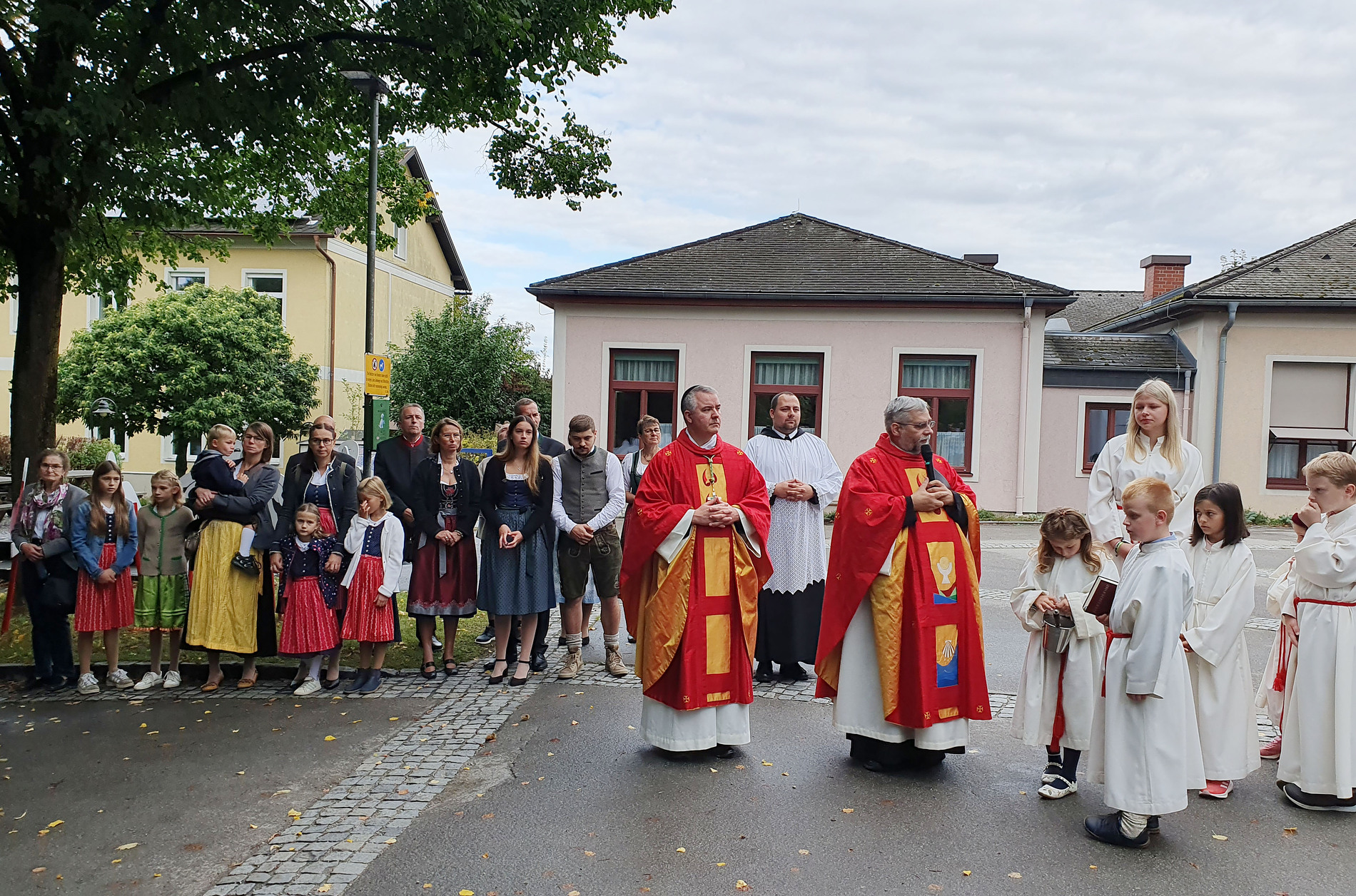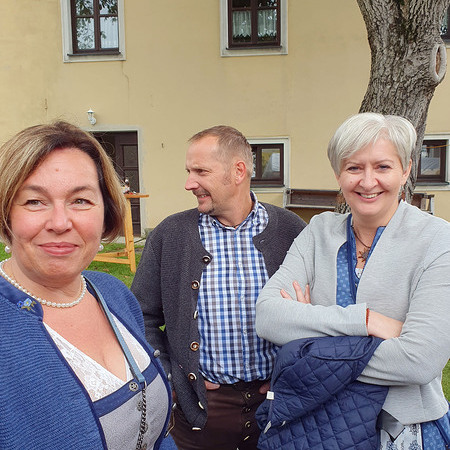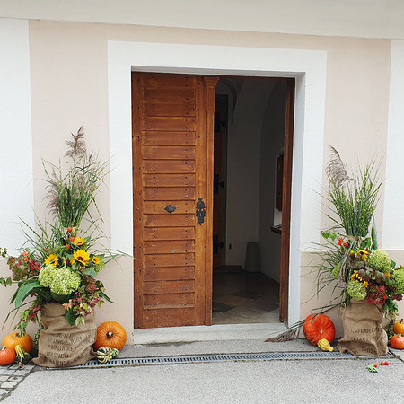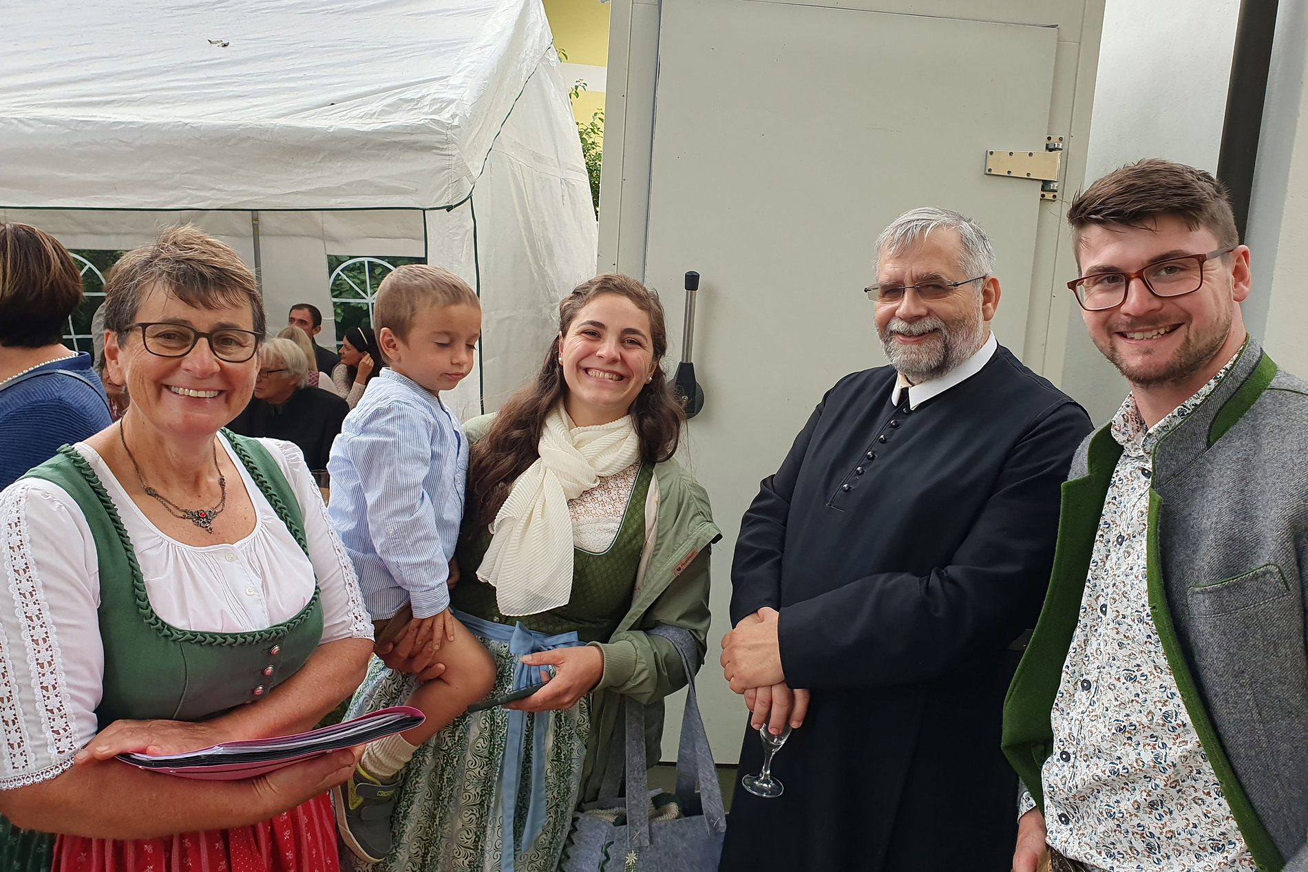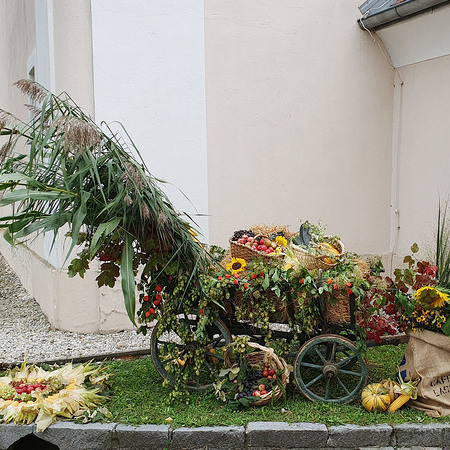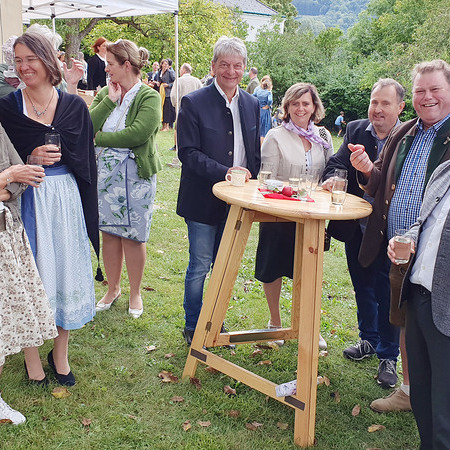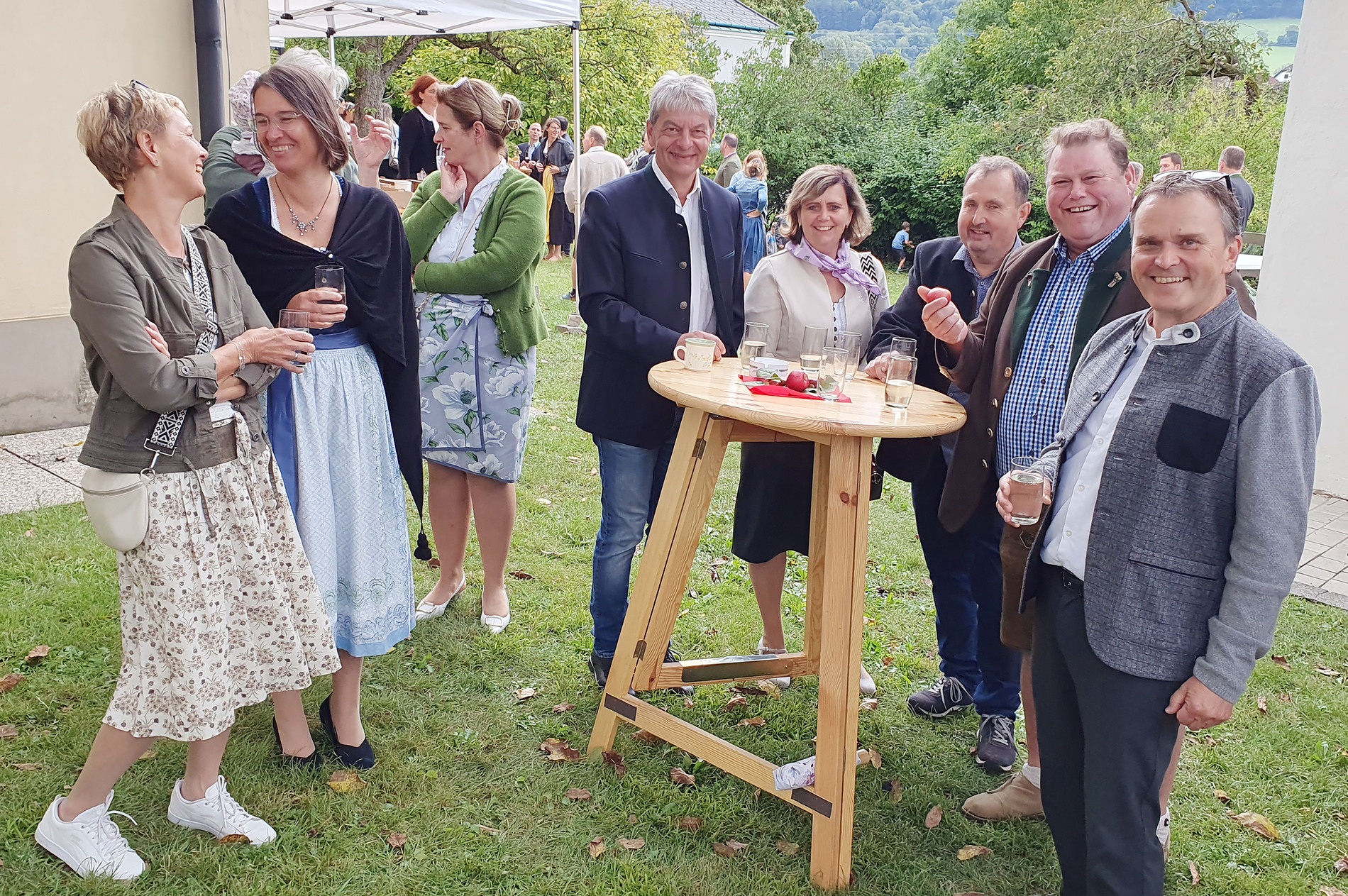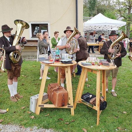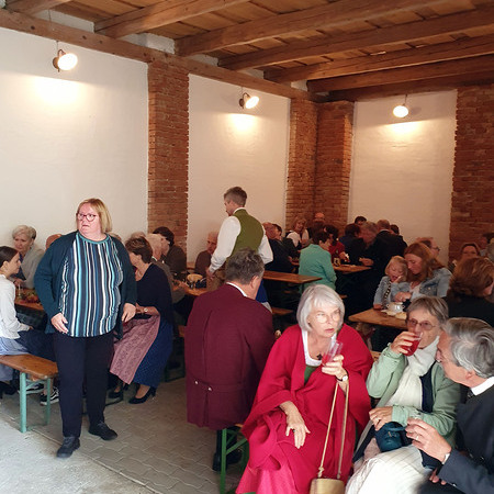 Im Anschluss an die Messfeier wurde P. Christian die Statue der heiligen Agatha (Pfarrpatronin von Bischofstetten) und ein Ausflugsgutschein überreicht. Gerald Zeilinger wurde für 15 Jahre als Mesner und Ministrantenbetreuer und Gabriele Gamböck für 5 Jahre Erntekronengestaltung ausgezeichnet. Anschließend gab es im Pfarrgarten ein gemütliches Fest, zu dem die Weisenbläser des Musikvereines aufspielten.