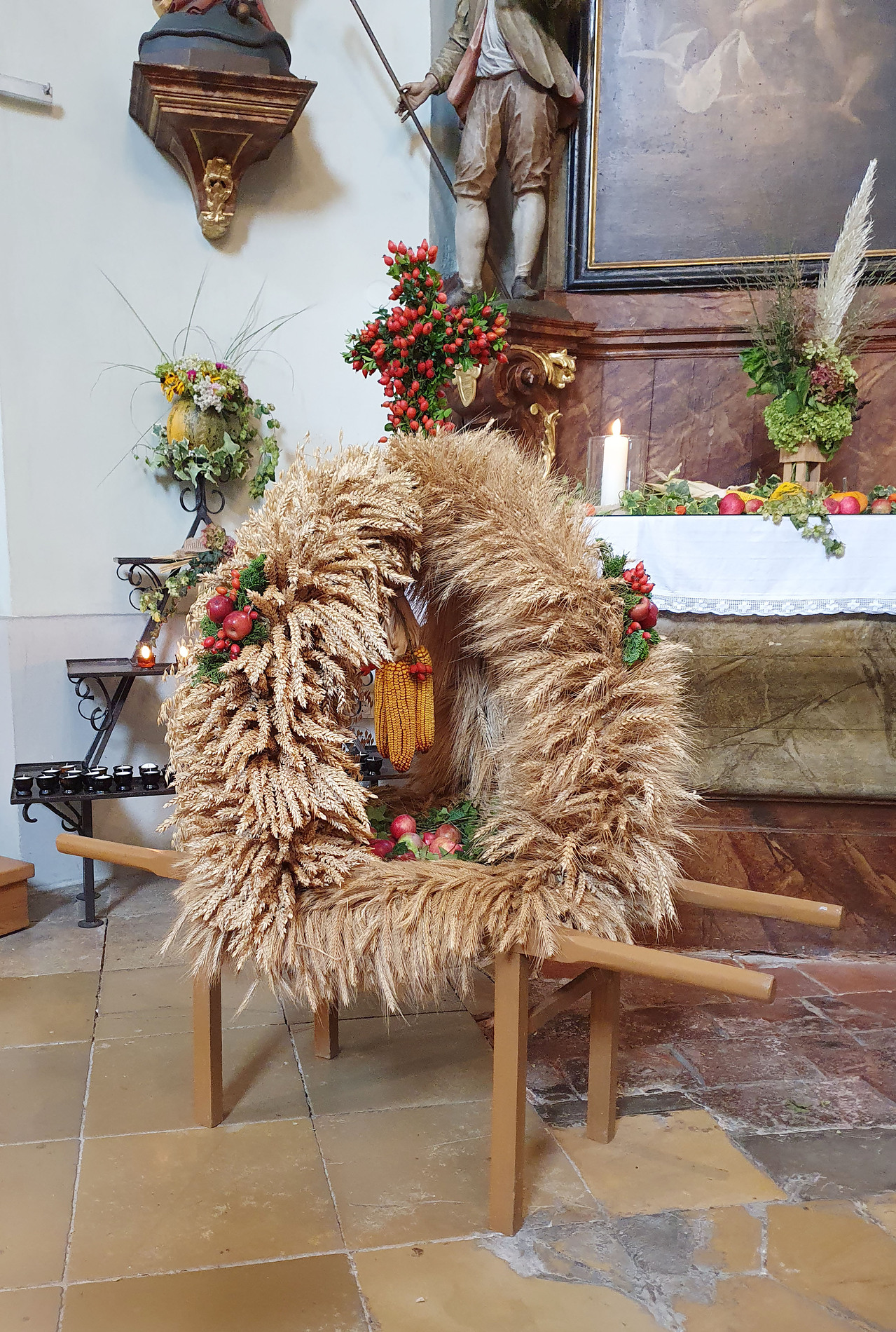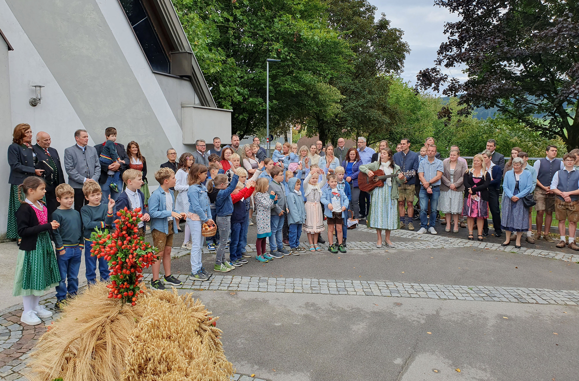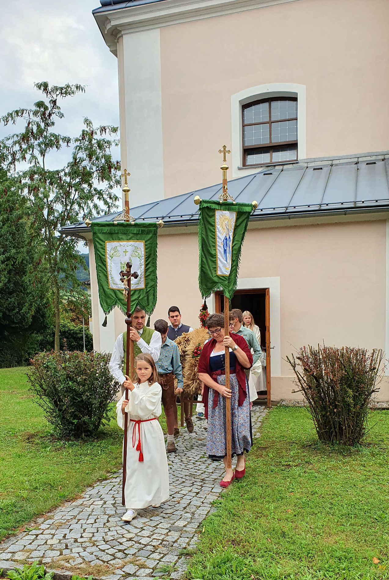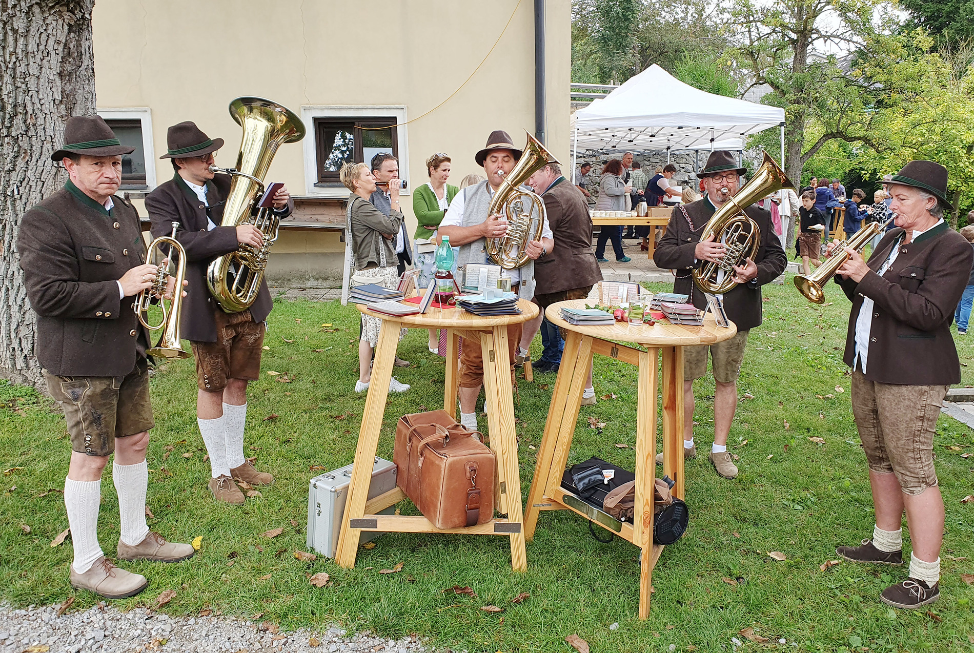 Im Anschluss an die Messfeier wurde P. Christian die Statue der heiligen Agatha (Pfarrpatronin von Bischofstetten) und ein Ausflugsgutschein überreicht. Gerald Zeilinger wurde für 15 Jahre als Mesner und Ministrantenbetreuer und Gabriele Gamböck für 5 Jahre Erntekronengestaltung ausgezeichnet. Anschließend gab es im Pfarrgarten ein gemütliches Fest, zu dem die Weisenbläser des Musikvereines aufspielten.